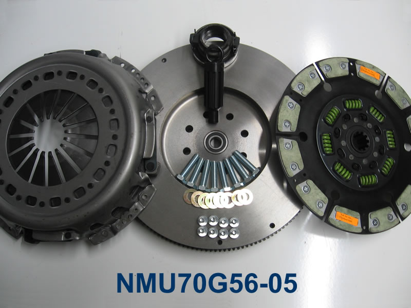 Kit includes: New G56 Solid Flywheel, 3400# Pressure Plate, Clutch Disc, Release Bearing, HD Pilot Bearing, Bolt Kit, and Alignment Tool.